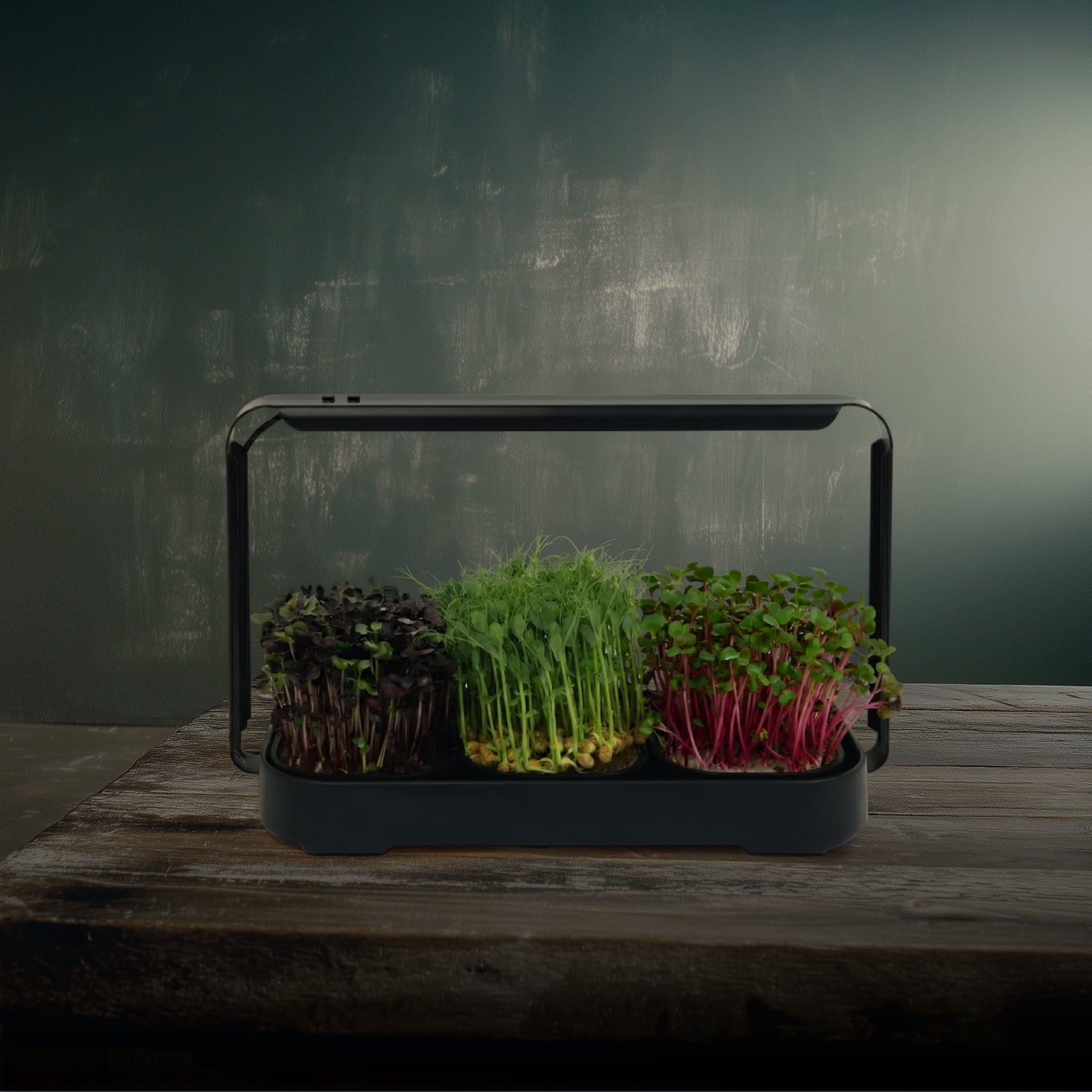 - Grows fresh microgreens all year round