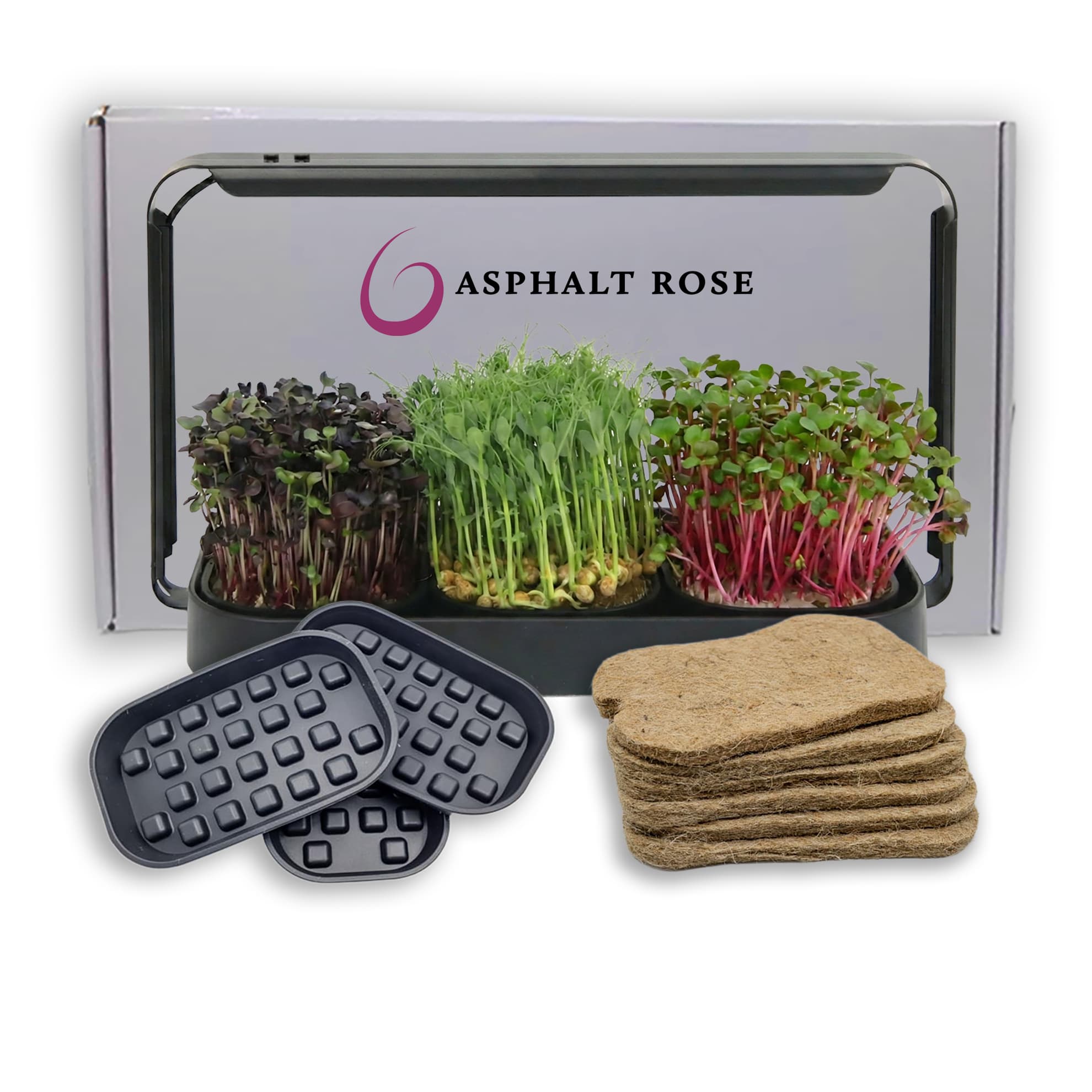 Microgreens Growing Trays Bundle – Grow Lamp, 3 Silicone Trays & 18 Jute Mats (No Seeds)